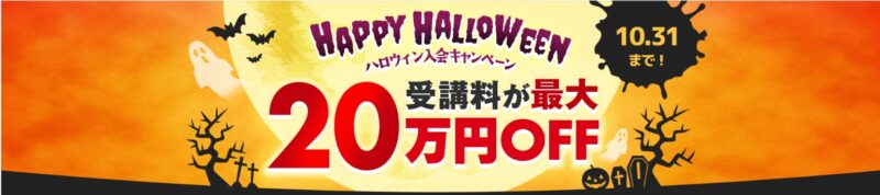 | ハロウィン入会キャンペーン | 2025年10月27日~10月31日 | 受講料最大20万円OFF(プラン別) |