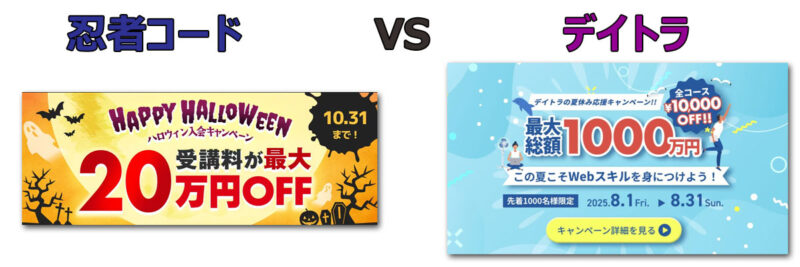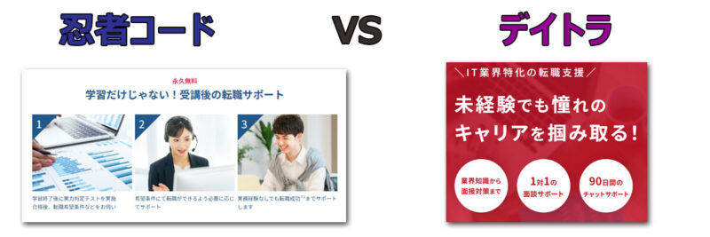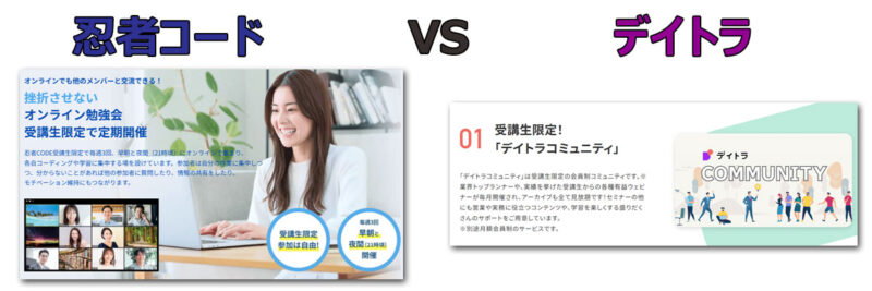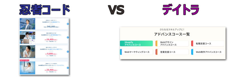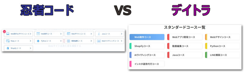 【結論】価格やサポートは忍者code!コース数や実績はデイトラ!