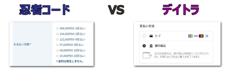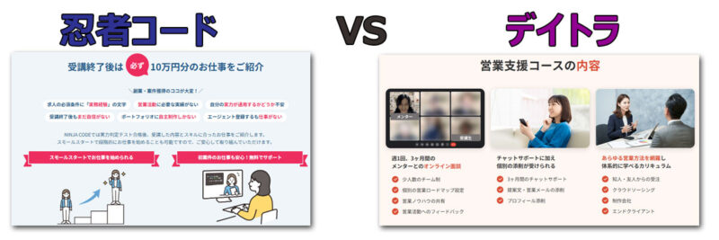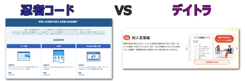 この記事では 「忍者code」と「デイトラ」の違いについて13項目で徹底的に比較した内容をお伝えします。